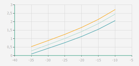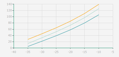 | 蒸發(fā)溫度 | 制冷量+/-5% | 能耗+/-5% | 現(xiàn)在能效+/-5% | 氣體流速+/-5% | 能效+/-7% | ||||