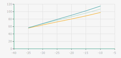 | 蒸發(fā)溫度 | 制冷量+/-5% | 能耗+/-5% | 現(xiàn)在能效+/-5% | 氣體流速+/-5% | 能效+/-7% | ||||