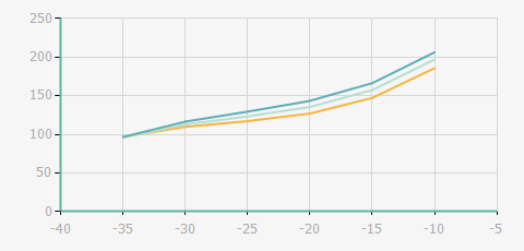 | 蒸發(fā)溫度 | 制冷量+/-5% | 能耗+/-5% | 現(xiàn)在能效+/-5% | 氣體流速+/-5% | 能效+/-7% | ||||
