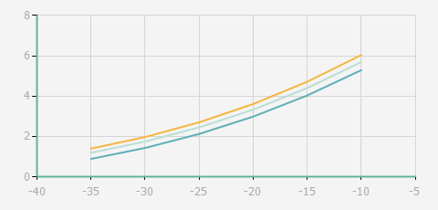 | 蒸發(fā)溫度 | 制冷量+/-5% | 能耗+/-5% | 現在能效+/-5% | 氣體流速+/-5% | 能效+/-7% | ||||