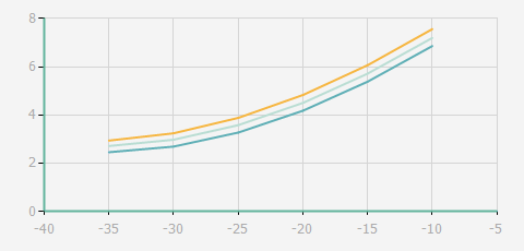 | 蒸發(fā)溫度 | 制冷量+/-5% | 能耗+/-5% | 現(xiàn)在能效+/-5% | 氣體流速+/-5% | 能效+/-7% | ||||