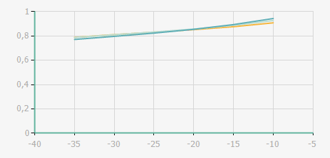 | 蒸發(fā)溫度 | 制冷量+/-5% | 能耗+/-5% | 現(xiàn)在能效+/-5% | 氣體流速+/-5% | 能效+/-7% | ||||