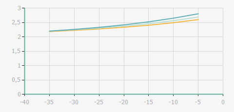 | 蒸發(fā)溫度 | 制冷量+/-5% | 能耗+/-5% | 現(xiàn)在能效+/-5% | 氣體流速+/-5% | 能效+/-7% | ||||