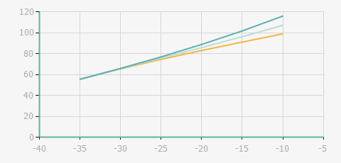 | 蒸發(fā)溫度 | 制冷量+/-5% | 能耗+/-5% | 現(xiàn)在能效+/-5% | 氣體流速+/-5% | 能效+/-7% | ||||