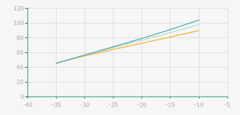 | 蒸發(fā)溫度 | 制冷量+/-5% | 能耗+/-5% | 現(xiàn)在能效+/-5% | 氣體流速+/-5% | 能效+/-7% | ||||