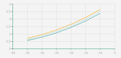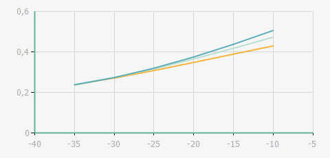 | 蒸發(fā)溫度 | 制冷量+/-5% | 能耗+/-5% | 現(xiàn)在能效+/-5% | 氣體流速+/-5% | 能效+/-7% | ||||