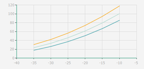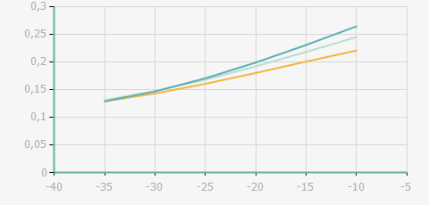 | 蒸發(fā)溫度 | 制冷量+/-5% | 能耗+/-5% | 現(xiàn)在能效+/-5% | 氣體流速+/-5% | 能效+/-7% | ||||