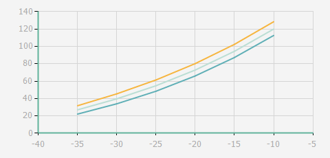 | 蒸發(fā)溫度 | 制冷量+/-5% | 能耗+/-5% | 現(xiàn)在能效+/-5% | 氣體流速+/-5% | 能效+/-7% | ||||